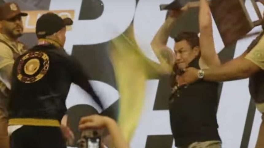O desfecho da coletiva foi marcado por um momento inesperado. Popó, demonstrando seu espírito competitivo e em uma reação impulsiva, pegou uma cadeira que estava no fundo do palco e a arremessou em direção a El Chino. Essa ação não apenas intensificou a rivalidade entre os lutadores, mas também deixou claro que a luta programada está longe de ser apenas mais um evento esportivo; ela é o culminar de uma série de tensões e provocações que estão se acumulando.