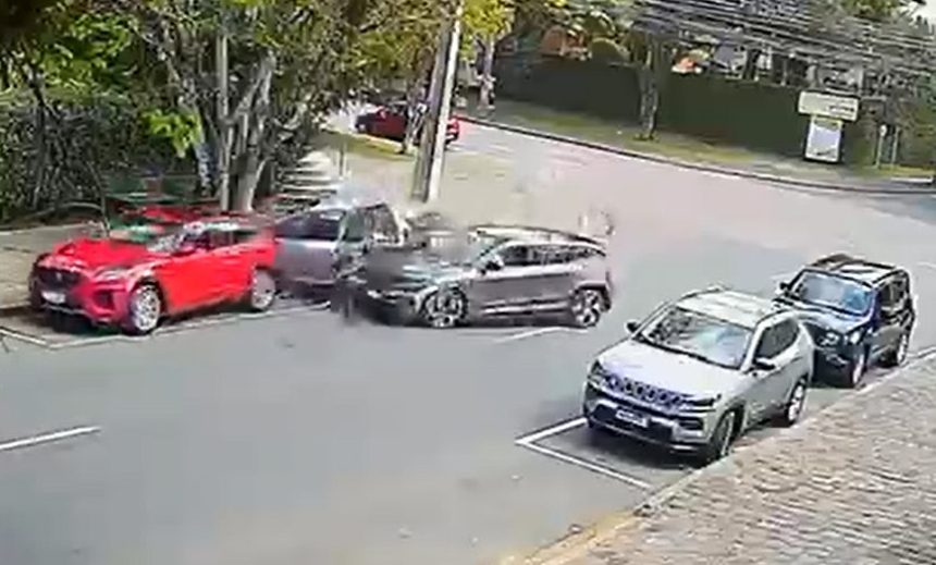 Nas imagens, o veículo aparece em alta velocidade pela Avenida Iguaçu até que o jovem perde o controle da direção e colide contra dois carros que estavam estacionados em frente a uma clínica médica. Apesar do impacto, não havia ninguém dentro dos veículos atingidos.