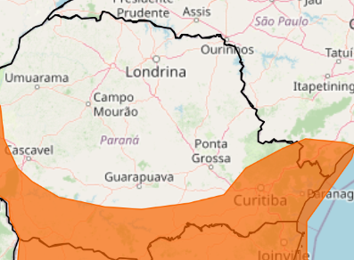 De acordo com o mapa divulgado pelo Inmet, o aviso abrange o Leste do Paraná, incluindo Curitiba, a Região Metropolitana e o Litoral, além de áreas do Sudeste Paranaense, Centro-Sul Paranaense, Centro Oriental Paranaense, Sudoeste Paranaense e Oeste Paranaense. Regiões do Norte e parte do Noroeste do Estado não estão incluídas neste alerta específico.