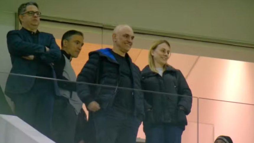 O flagrante foi registrado quando Moraes se dirigia a um dos camarotes da arena, acompanhado do presidente interino do Corinthians, Osmar Stábile, e da esposa, Viviane Barci. O registro da presença do ministro no evento esportivo ganhou repercussão nas redes sociais e nos veículos de imprensa, sobretudo em razão da coincidência com o momento delicado no cenário internacional.