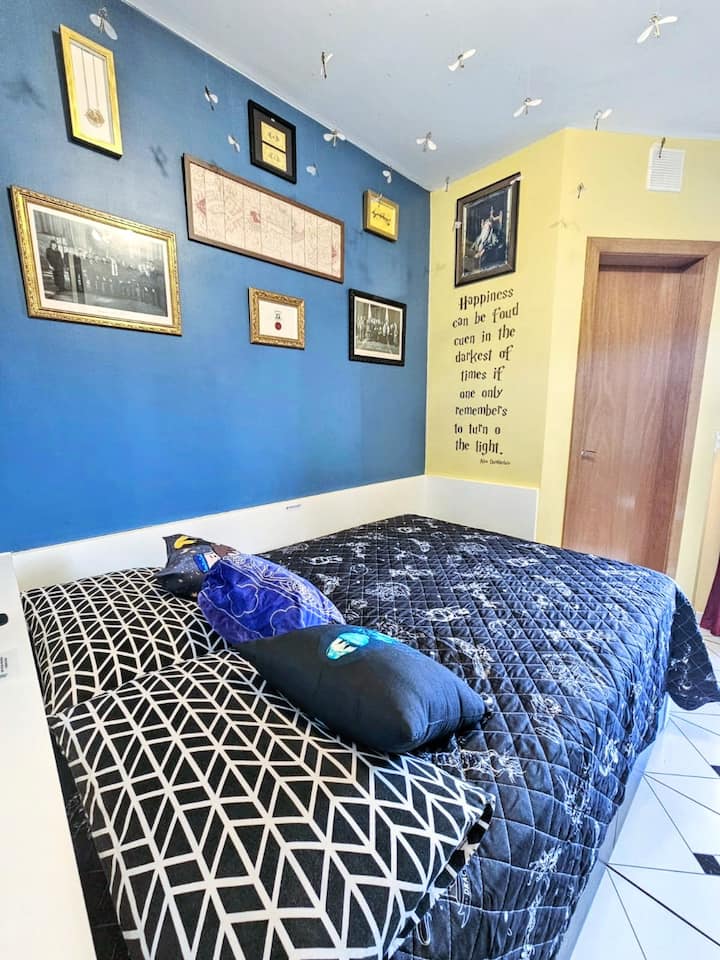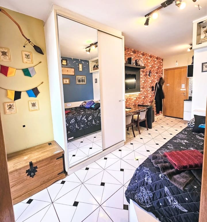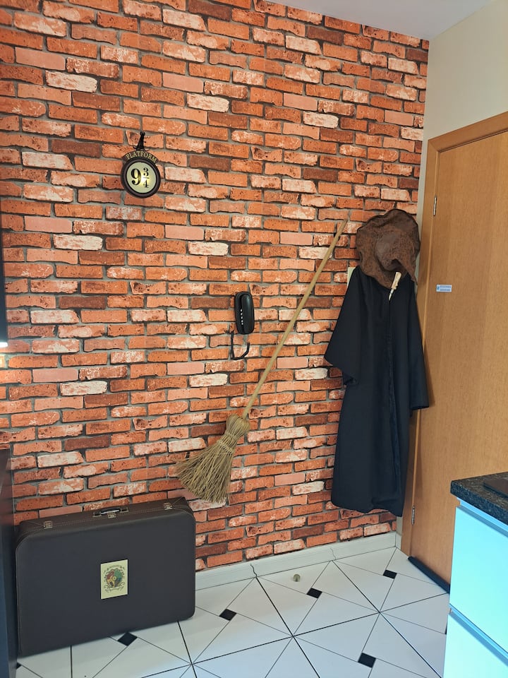 Localizado em frente à FAE, o apartamento tem fácil acesso aos principais pontos turísticos da cidade, bem como ao aeroporto, rodoviária, shoppings, restaurantes e lojas. A proposta vai além da hospedagem tradicional: o local oferece uma experiência completa com itens como capa, chapéu, varinha e até uma mala personalizada para fotos. Tudo pensado para que os visitantes possam viver momentos de fantasia e diversão dignos de Hogwarts.