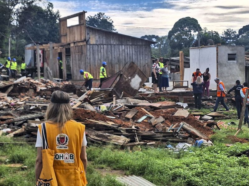 A reintegração de posse da ocupação Britanite, no Tatuquara, comandada pela Polícia Militar, na manhã desta quinta-feira (20/2), contou com o apoio de dezenas de servidores da Prefeitura de Curitiba, com o objetivo de oferecer suporte às famílias e também para assegurar uma ação pacífica. Uma decisão judicial havia determinado, na semana passada, a desocupação do terreno, que é de propriedade particular.
