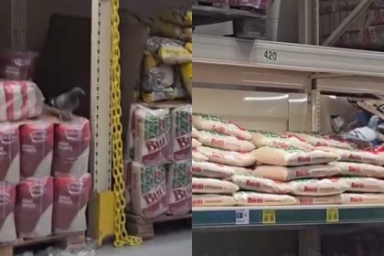 Vídeo: Pombos são flagrados comendo arroz em prateleira de atacadista na Linha Verde, em Curitiba