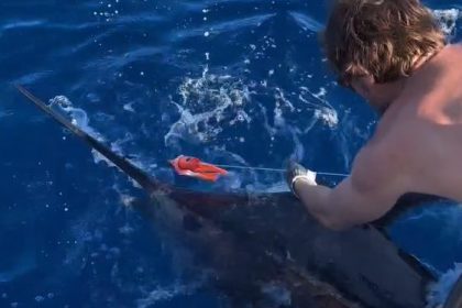 Biólogo registra captura rara de marlim-azul no litoral do Paraná