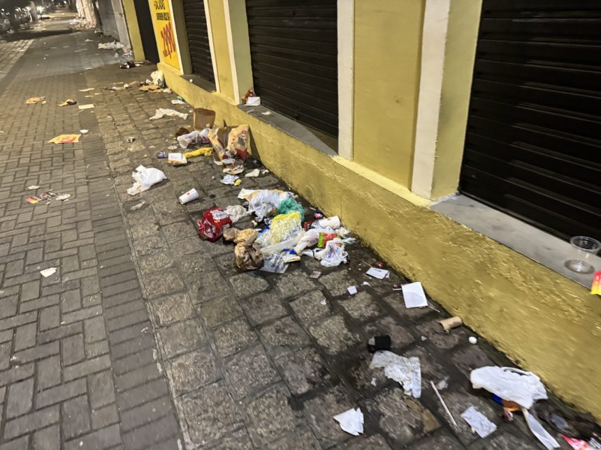 Enquanto o artista se apresentava dentro da Arena, o cenário do lado de fora contrastava com a festa: as calçadas tomadas por resíduos. “É muita falta de respeito com quem mora aqui. A rua amanheceu cheia de lixo, e ninguém parece se importar”, relatou um morador indignado.