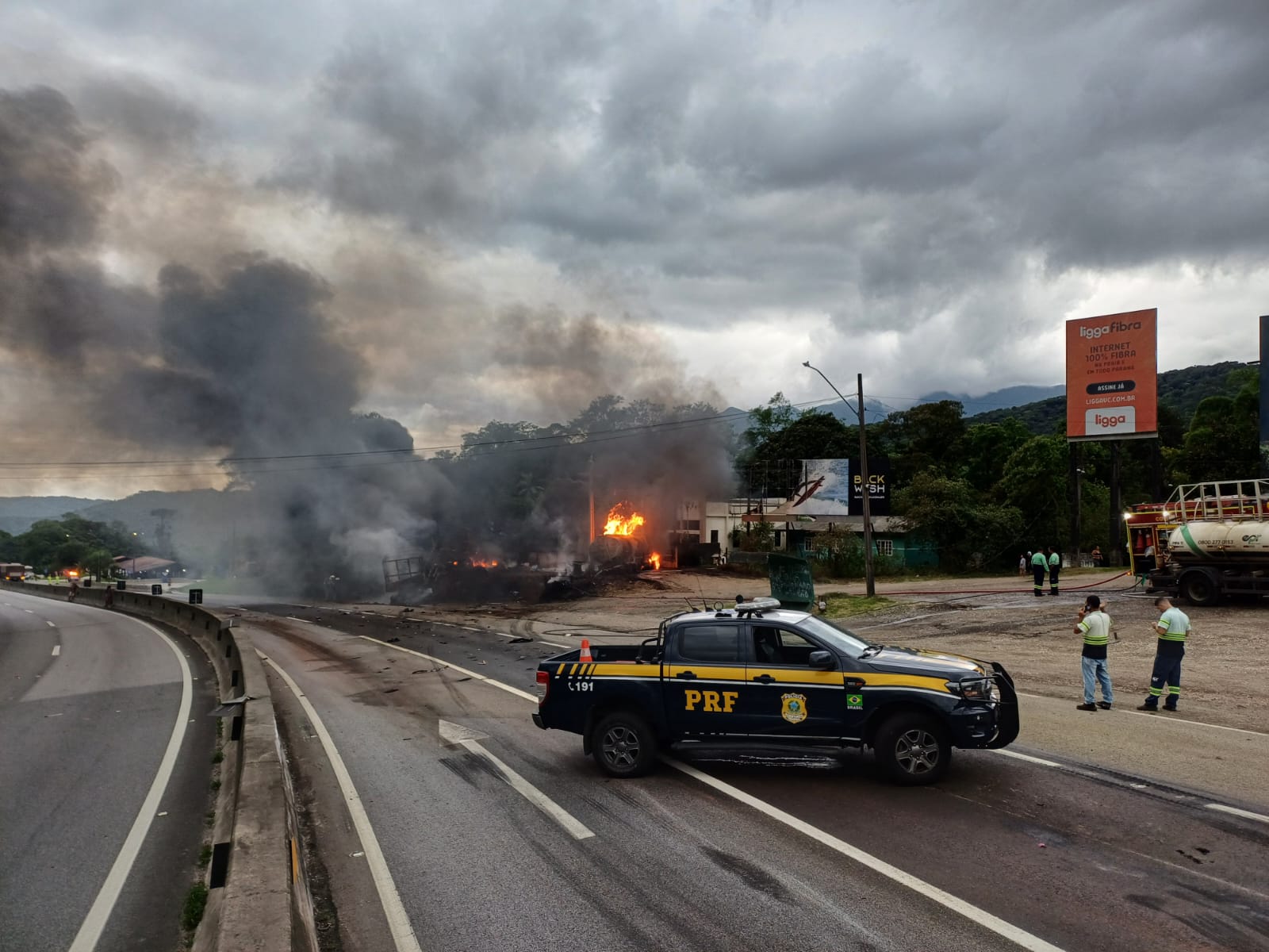 De acordo com a Polícia Rodoviária Federal (PRF), as chamas consumiram parte de um dos caminhões envolvidos na colisão, mas foram rapidamente controladas pelos bombeiros, que também atenderam duas pessoas com ferimentos leves. Apesar da gravidade do acidente e do fogo, não houve registro de vítimas graves.