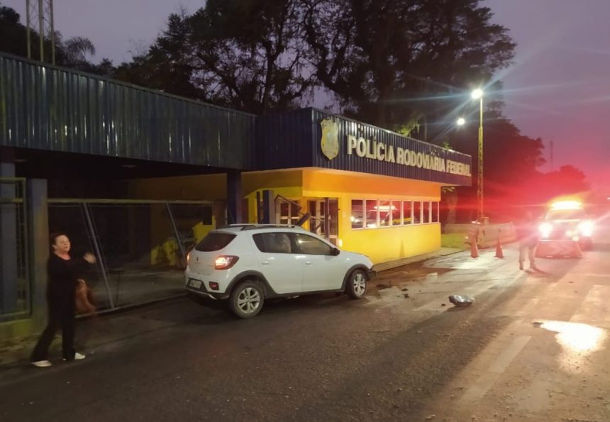 O veículo de passeio colidiu lateralmente com o caminhão e acabou parando dentro do próprio posto da PRF, onde os agentes já estavam presentes. Com isso, o atendimento foi imediato.