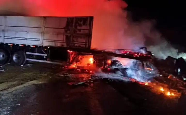 Com o impacto, os dois veículos pegaram fogo, dificultando o trabalho das equipes de resgate. Além do casal, um terceiro ocupante, que estava no outro caminhão envolvido na colisão, também perdeu a vida no acidente.