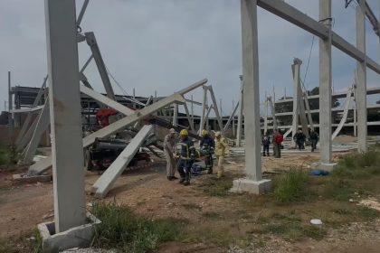 Estrutura de galpão desaba na Grande Curitiba e deixa quatro pessoas feridas