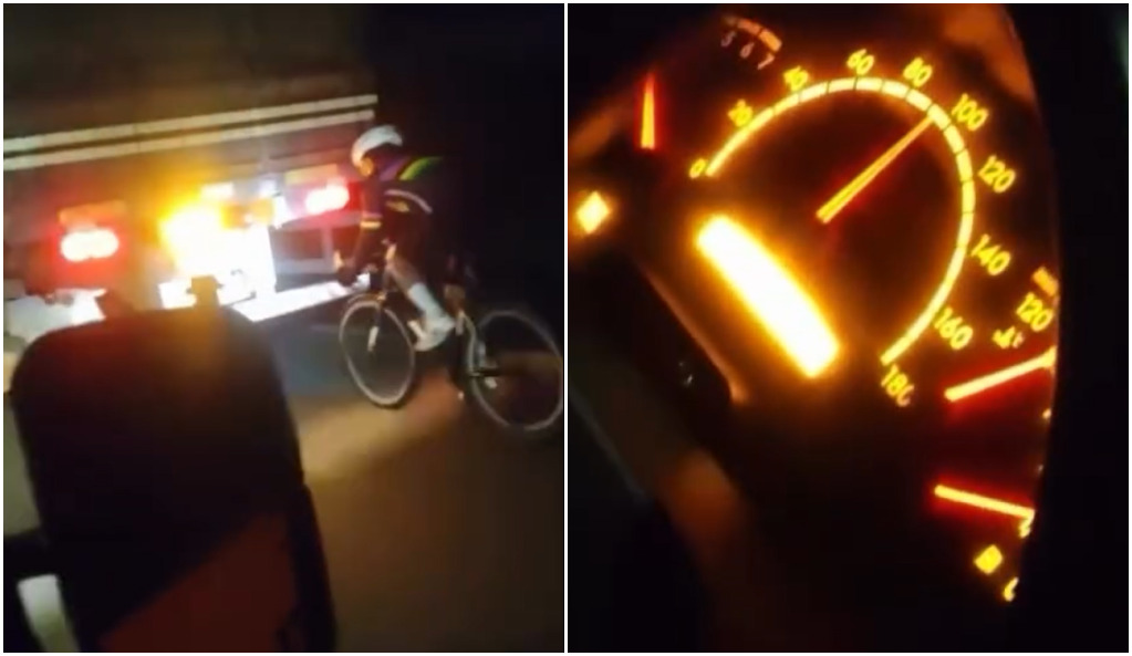 Um ciclista foi flagrado pedalando a 100 km/h enquanto seguia atrás de um caminhão na BR-369, entre as cidades de Apucarana e Arapongas, no norte do Paraná. A cena inusitada foi registrada em vídeo por um passageiro de uma van que trafegava pelo mesmo trecho na noite desta terça-feira (13).