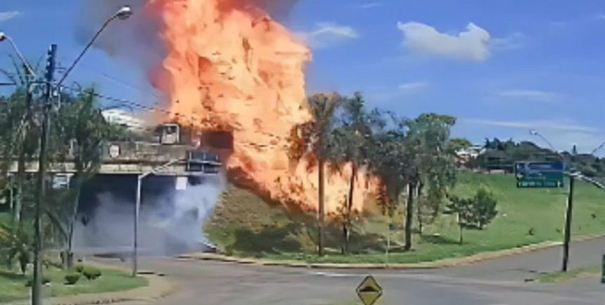 Na manhã desta quarta-feira (12), um grave acidente envolvendo dois caminhões resultou em uma grande explosão na PR-092, em Arapoti, mobilizando equipes de resgate para conter as chamas. De acordo com informações preliminares, um dos veículos era um caminhão-tanque que subia a rodovia quando foi atingido por outro caminhão que descia, supostamente tentando uma ultrapassagem.