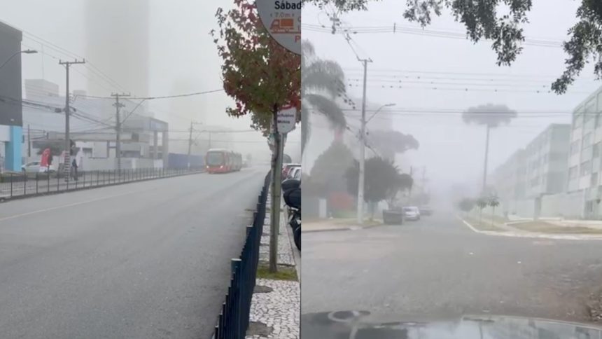 Curitiba amanheceu coberta por um denso nevoeiro nesta terça-feira (8), com a mínima registrada de 6,1 °C, segundo dados do Simepar. Desde as primeiras horas da manhã, a paisagem encoberta e a visibilidade comprometida chamaram a atenção dos moradores da capital paranaense, que rapidamente passaram a registrar vídeos e fotos da cidade encoberta e compartilhar nas redes sociais. A neblina foi especialmente intensa nos bairros mais altos e em regiões próximas a áreas verdes, dando um tom cinematográfico à rotina matinal dos curitibanos.