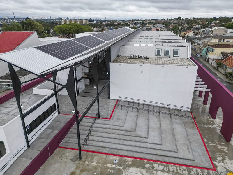 - A construção conta com painéis solares que vão produzir cerca de 240 kW de energia. O sistema atenderá boa parte das demandas do espaço.