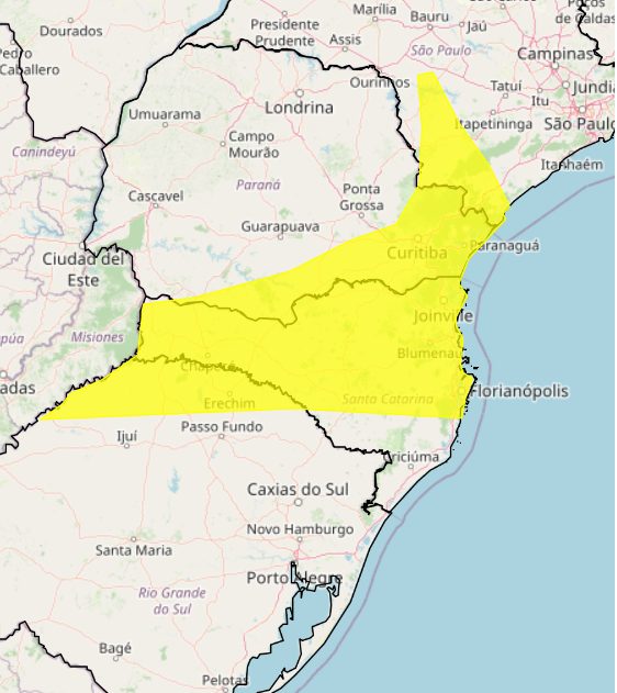 Além da capital paranaense, o aviso inclui as seguintes áreas:
