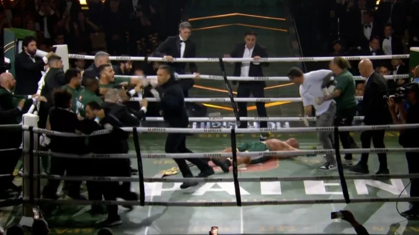 Pouco depois, integrantes das duas equipes invadiram o ringue e trocaram socos. A confusão envolveu também os próprios atletas, e Wanderlei acabou nocauteado durante a briga, deixando o local com sangramento na cabeça, segundo informações da TV Globo.