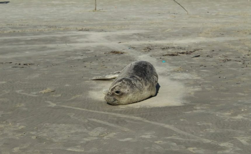 Um elefante-marinho da espécie Mirounga leonina foi encontrado encalhado na manhã desta sexta-feira (26) no Balneário Monções, em Matinhos, no litoral do Paraná. O animal foi localizado por volta das 6h30 durante patrulhamento de rotina realizado pela Polícia Militar do Paraná na faixa de areia.