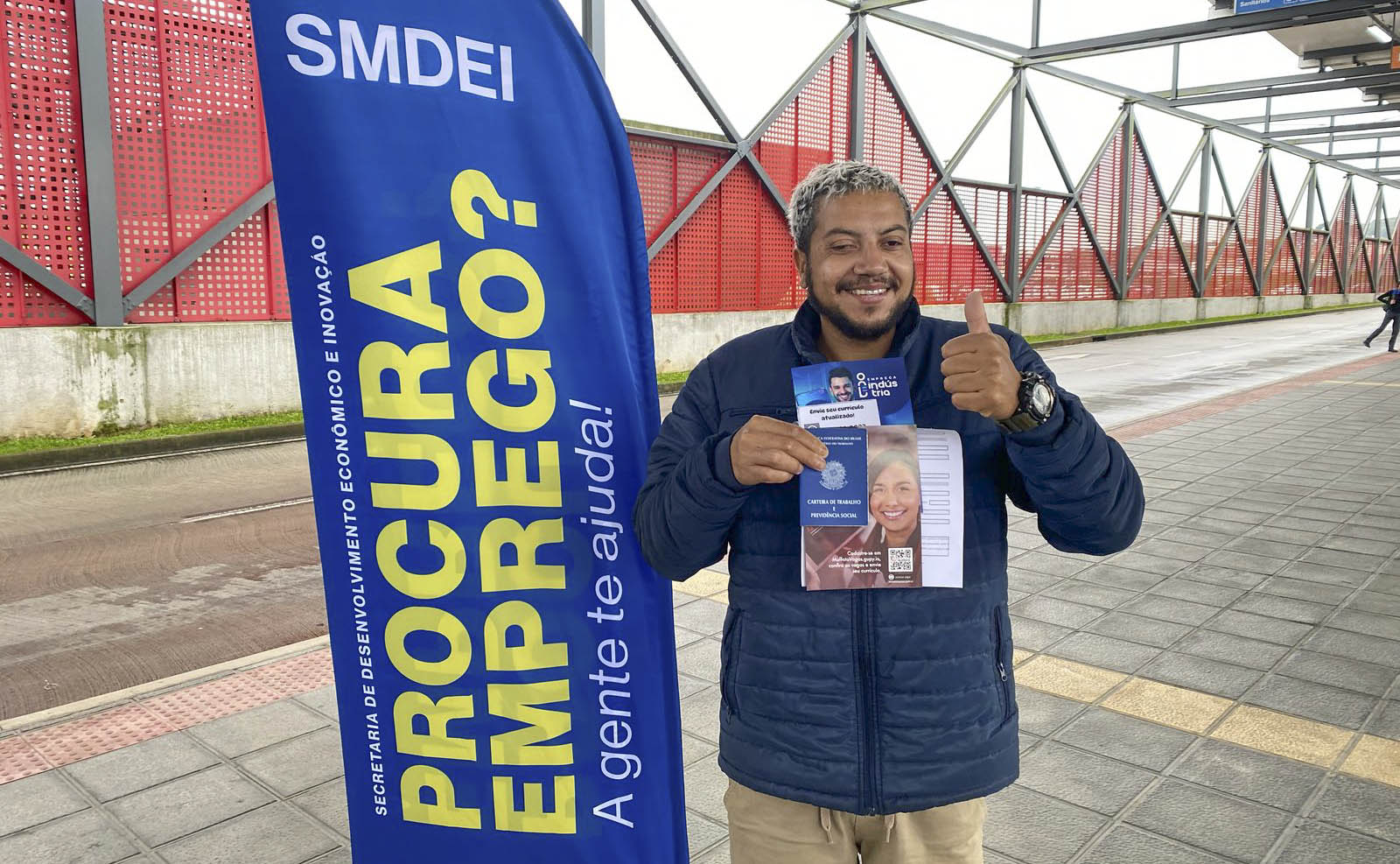 Na terça-feira (20/5), segundo dia do evento, Jean foi abordado ao desembarcar no Terminal do Tatuquara por um servidor da Prefeitura, que perguntou se poderia consultar vagas de emprego para o perfil do trabalhador. Sem nada a perder, ele topou e foi direcionado à representante de uma das indústrias participantes, que já o encaminhou para a próxima etapa: a entrevista de emprego, realizada por videochamada.