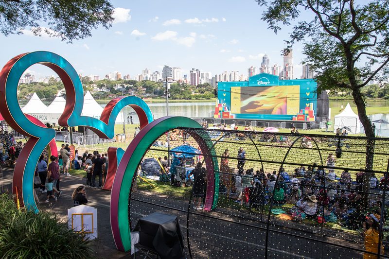 Nesta sexta-feira (5/12), o primeiro dia de Disney+ Open Air, que é a atração do Natal da Disney em Curitiba de cinema ao ar livre, famílias de curitibanos e de turistas se reuniram no Parque Mágico do Barigui para assistir aos filmes queridinhos com clima de férias e nostalgia.