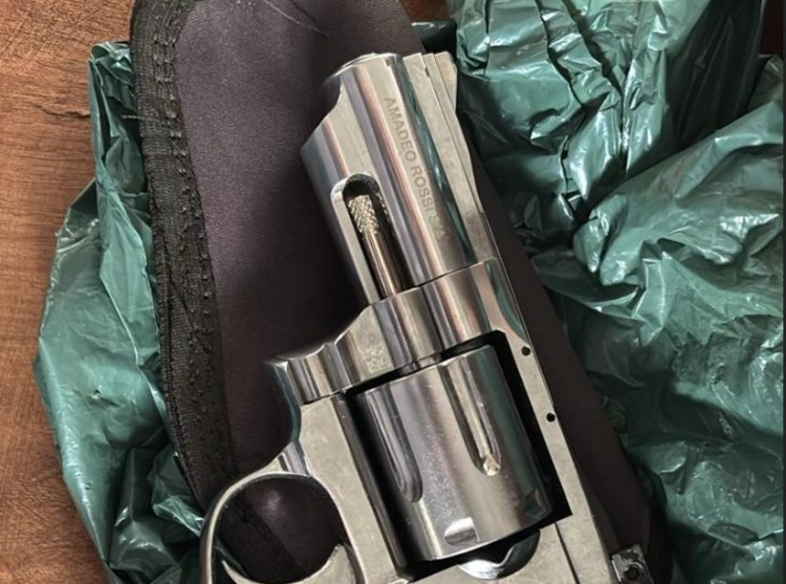 Durante o cumprimento do mandado, os policiais apreenderam um revólver de chumbinho, que teria sido utilizado para intimidar a vítima durante o crime.