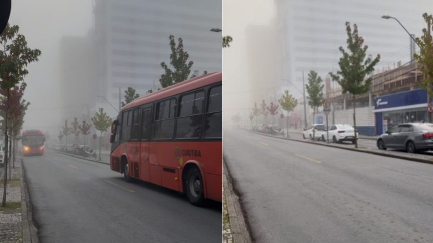A cidade de Curitiba foi surpreendida nesta terça-feira (15) por um denso nevoeiro que tomou conta de diversas regiões nas primeiras horas da manhã. A neblina, que cobriu ruas, praças e pontos turísticos, transformou a paisagem da capital paranaense em um cenário digno de filme, chamando a atenção de moradores e turistas.