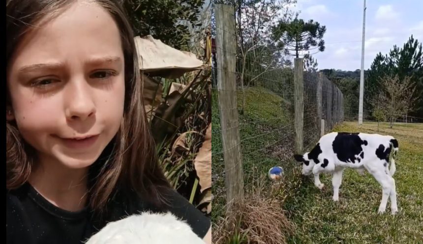 Uma cena inusitada e cheia de ternura ganhou destaque nas redes sociais após Manuella Valaszki, moradora de Irati, na região Centro-Sul do Paraná, adquirir um bezerro por apenas R$ 50. O animal, chamado Bento, tinha apenas 18 dias de vida quando chegou à nova casa e, segundo a jovem tutora, veio para ser tratado como um pet.