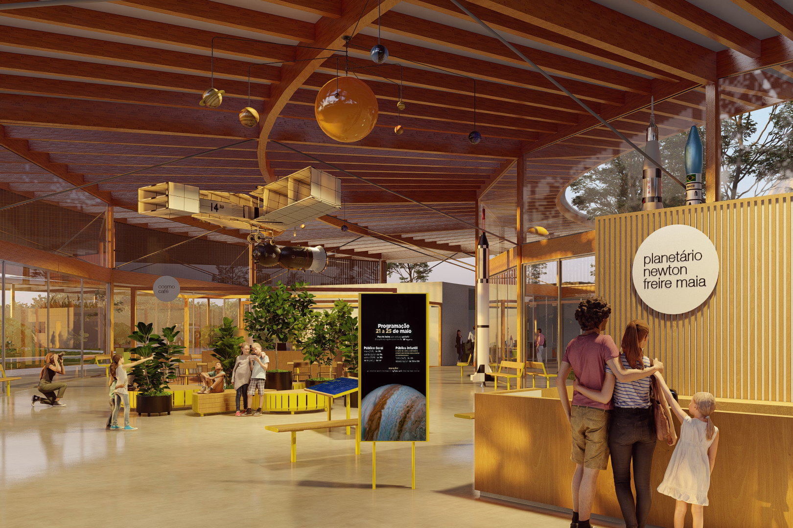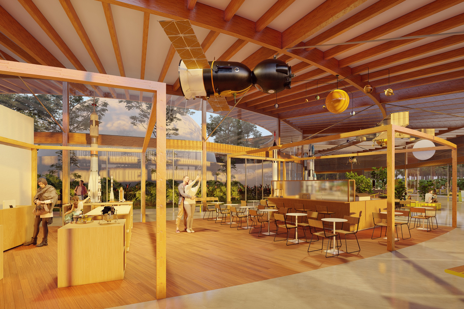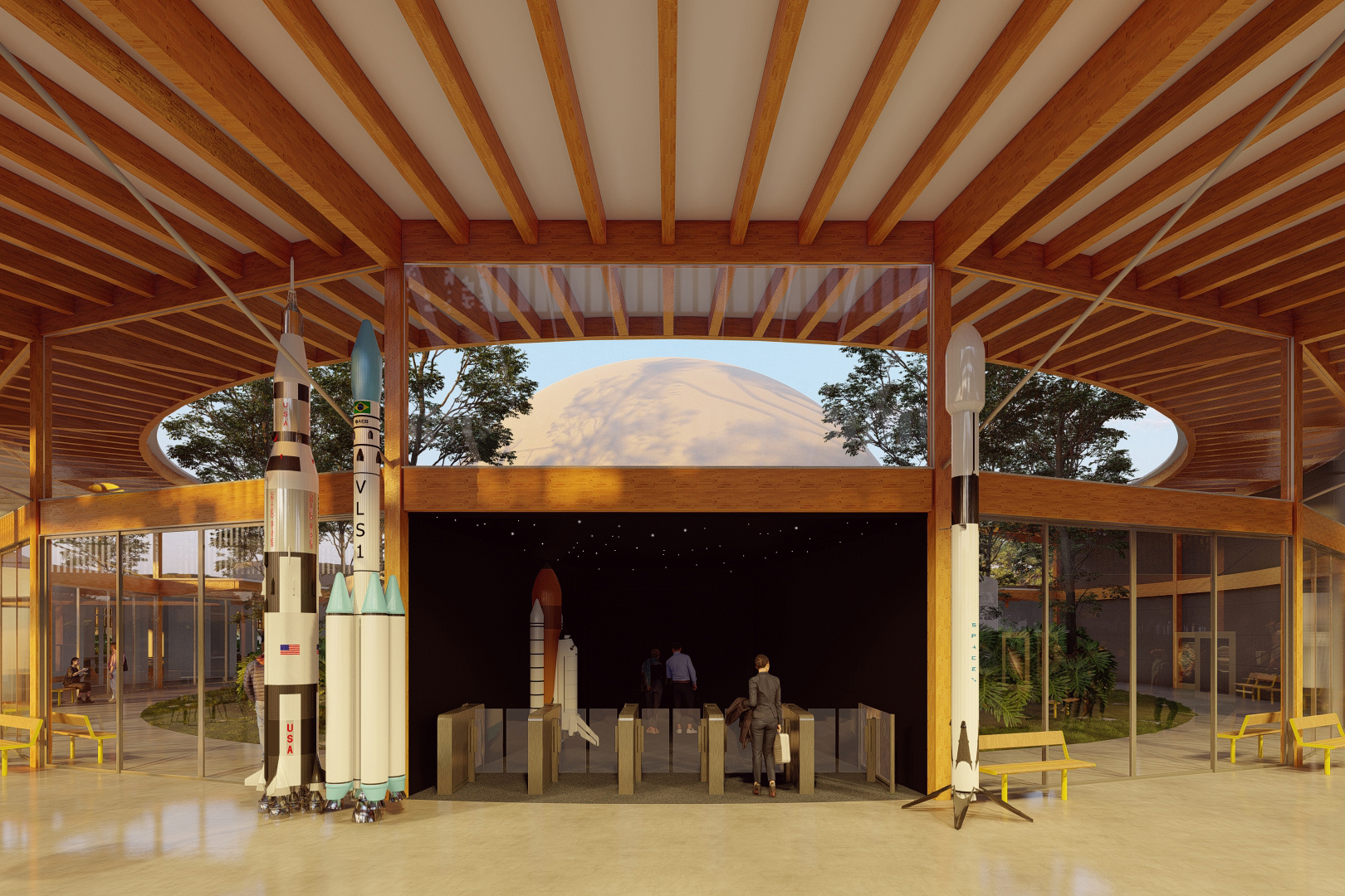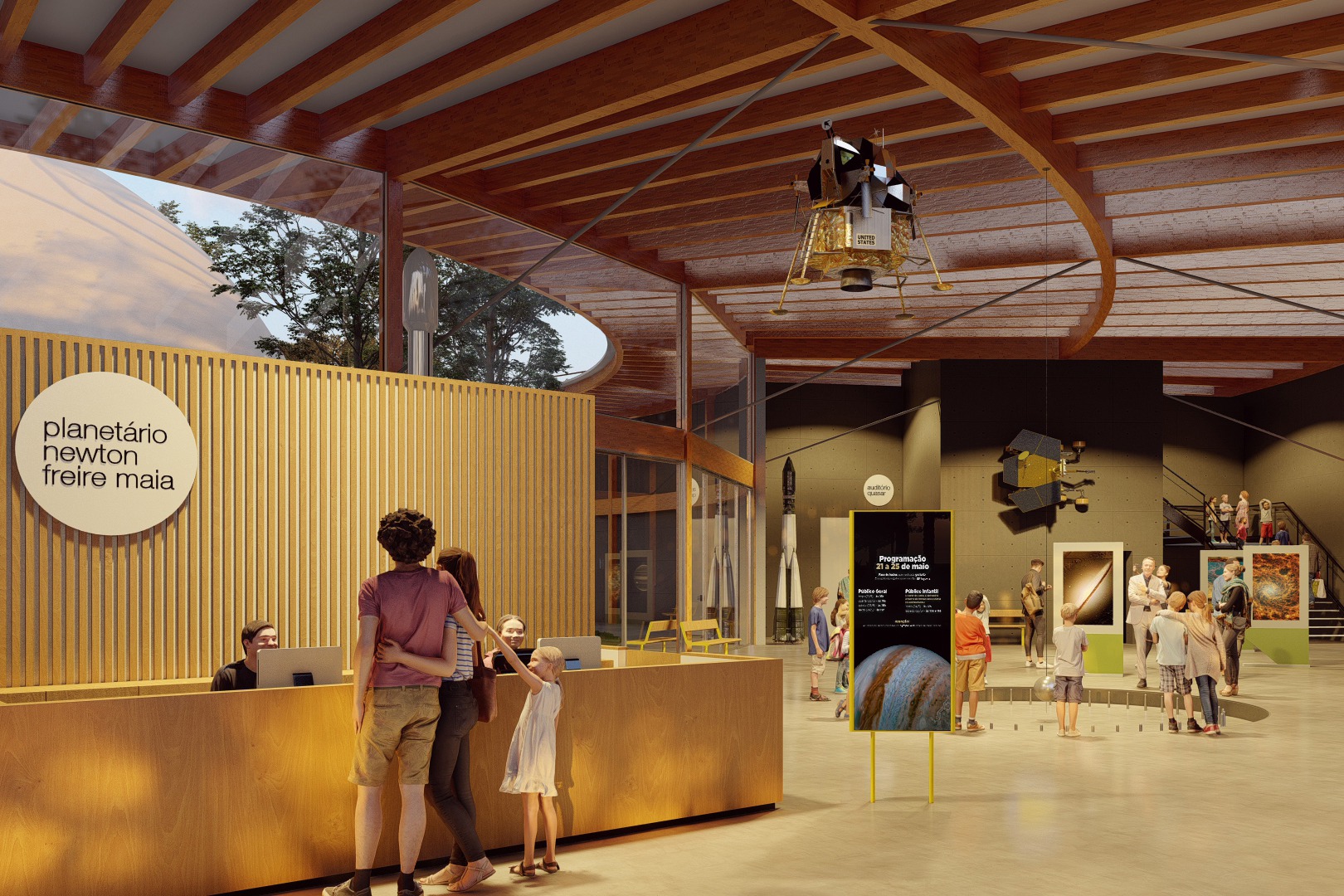 O planetário contará com um grande saguão, com espaço para exposições, transformando-se em um local de convivência, além de sala de reuniões, café, auditório e cúpula de projeção, onde será o planetário em si. “É o coração de todo o projeto. A cúpula será em formato circular, fazendo todas as outras alas serem círculos concêntricos em volta dessa cúpula de projeção”, detalha o arquiteto.