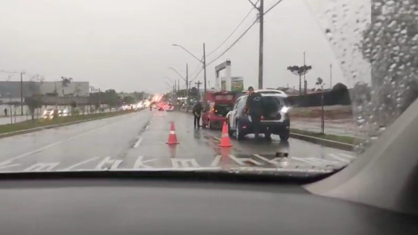 O motorista estava parado no acostamento e tentava trocar o pneu quando os guardas, que passavam pela via, perceberam a dificuldade e decidiram parar para ajudar. A ação ocorreu em um trecho de intenso movimento, o que aumentava o risco por conta da chuva e da baixa visibilidade.
