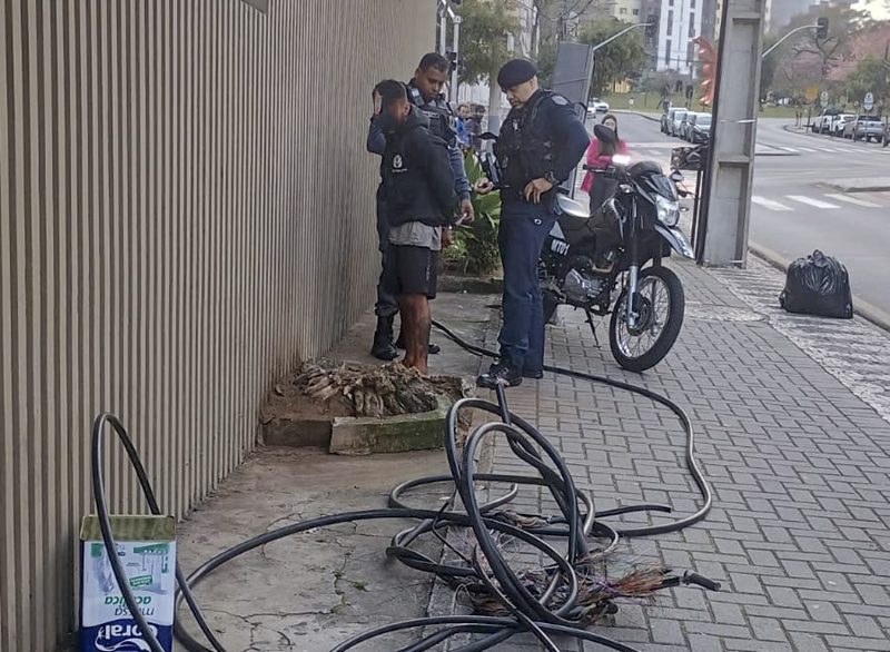 A Guarda Municipal de Curitiba prendeu um homem em flagrante por furto de cabos de telefonia, no bairro Portão, na tarde desta quarta-feira (23/7). Com ele, os agentes apreenderam cerca de 34 quilos de cabos de telefonia furtados. O suspeito foi conduzido à Central de Flagrantes da Polícia Civil do Paraná, no bairro Portão.