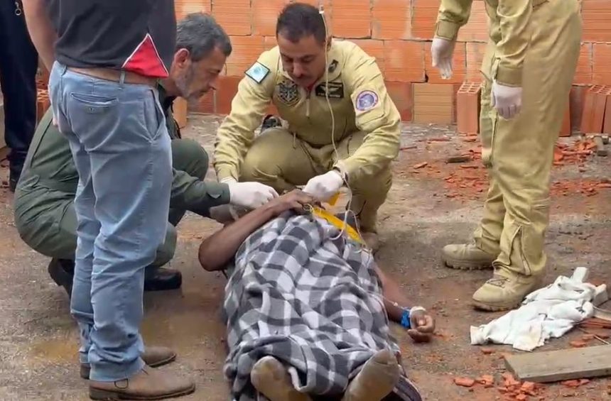 De acordo com a equipe, a vítima apresentou traumatismo cranioencefálico (TCE) após a queda de plano elevado. O atendimento inicial foi realizado no local pela equipe médica do Falcão 08, que realizou a estabilização do paciente antes do transporte.
