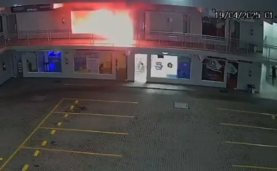 Imagens de câmeras de segurança mostram o momento em que um homem ateia fogo ao escritório, localizado no segundo andar de um conjunto comercial. A motivação do crime, conforme as autoridades, seria uma represália relacionada a um serviço prestado pelo escritório.