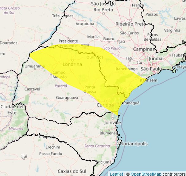 O alerta abrange uma vasta região que inclui não apenas Curitiba, mas também outras áreas como o Norte Pioneiro Paranaense, Metropolitana de Curitiba, Bauru, Noroeste Paranaense, Norte Central Paranaense, Itapetininga, Presidente Prudente, Centro Oriental Paranaense, Centro Ocidental Paranaense, Assis, Litoral Sul Paulista, Marília, Norte Catarinense, e Sudeste Paranaense, além da Macro Metropolitana Paulista.