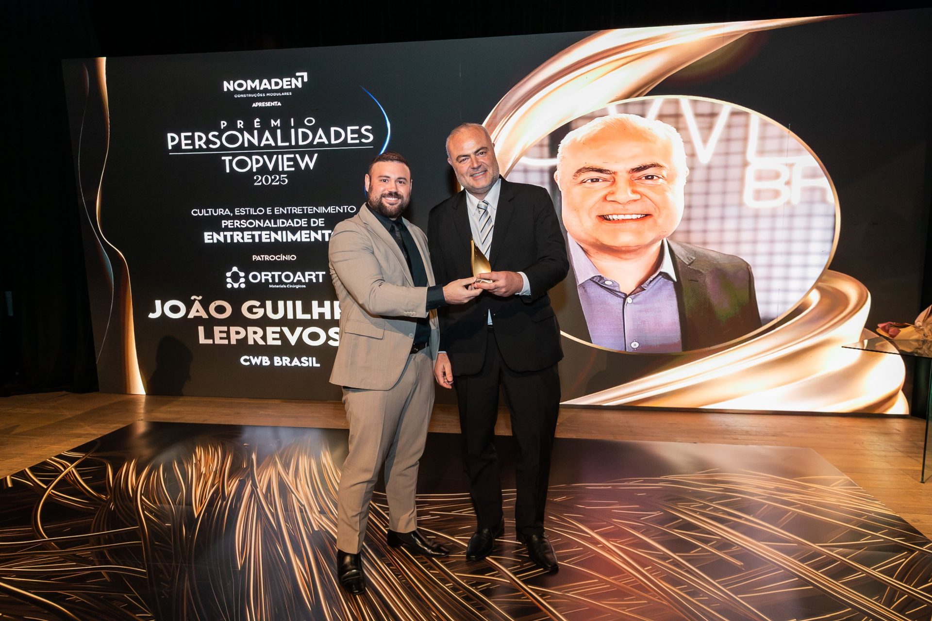 Fundador da tradicional CWB Brasil, João Guilherme Leprevost recebeu o reconhecimento por sua trajetória de mais de 30 anos dedicada ao entretenimento, desde a criação de bares e casas noturnas nos anos 1990 até a produção de mais de 400 grandes eventos nacionais e internacionais. Sua atuação inclui turnês históricas, como Sandy & Junior e Roberto Carlos, além de festivais de referência, entre eles o Curitiba Country Festival, e parcerias com grandes fenômenos da música nacional, entre eles Anitta, Thiaguinho e Gusttavo Lima. Em 2025, ampliou ainda mais sua presença no cenário nacional ao assumir a produção da turnê “Inevitável – A Festa”, de Bruno & Marrone, enquanto reposicionava a CWB Brasil como uma das marcas mais sólidas do setor.