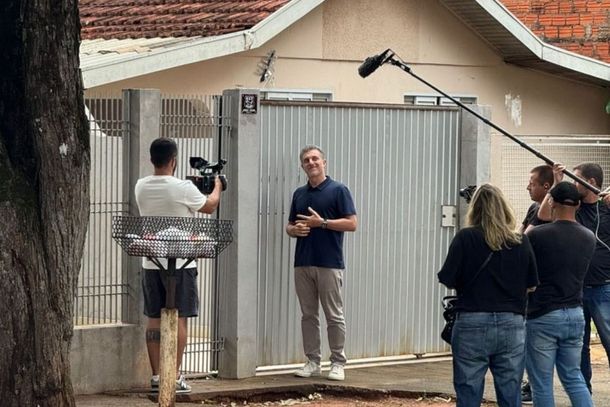 A presença do apresentador Luciano Huck em Cianorte, no Paraná, chamou a atenção dos moradores na tarde desta quarta-feira (5). O comunicador foi flagrado gravando em frente a uma residência na cidade, o que gerou especulações de que ele poderia estar anunciando um novo milionário do quadro “Familhão”, do programa Domingão com Huck.