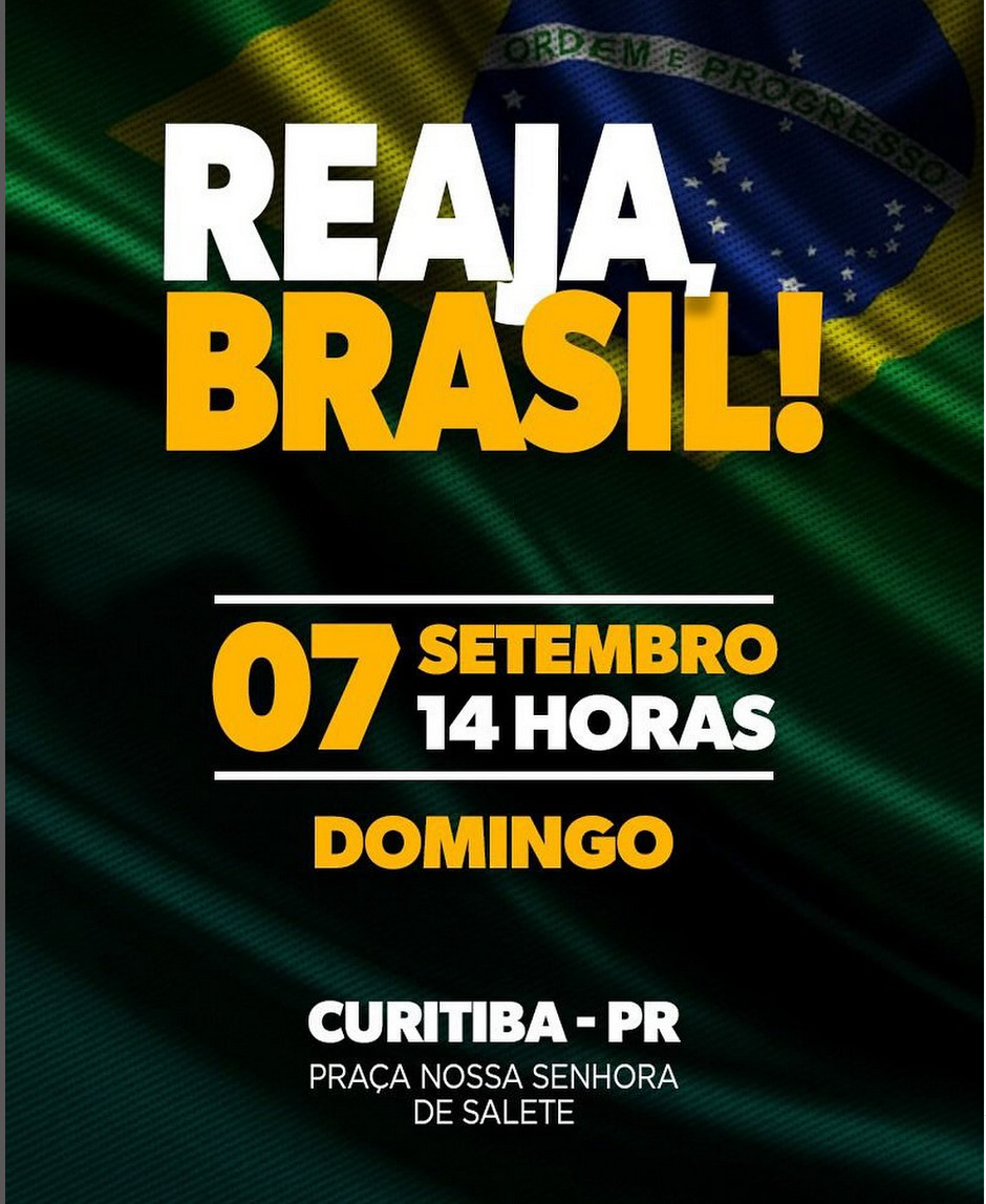 Na capital paranaense, o advogado Jeffrey Chiquini está entre os que chamaram a população para comparecer ao ato. Outros nomes ligados ao meio político e religioso também endossaram a mobilização, que pretende reunir apoiadores em diferentes regiões do Brasil na data simbólica do Dia da Independência.