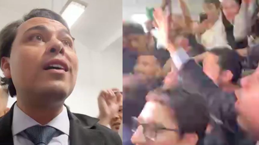 Quando os palestrantes chegaram ao prédio histórico da universidade, foram recebidos por um grupo que se opunha à realização do evento. Os manifestantes permaneceram em frente ao Salão Nobre, entoando gritos de protesto e bloqueando a entrada. A situação provocou momentos de confusão, com troca de ofensas e tentativa de confronto entre os dois lados.