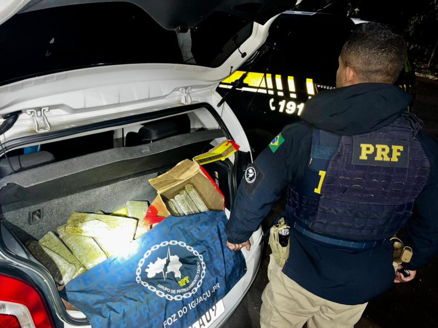 Um adolescente foi apreendido com 50,2 quilos de maconha durante uma fiscalização da Polícia Rodoviária Federal (PRF) na BR-277, em Santa Terezinha de Itaipu, no oeste do Paraná. A ação ocorreu por volta da 1h da madrugada desta quarta-feira (2), quando um carro com placas de São Paulo, ocupado por dois indivíduos, foi abordado pelos agentes.
