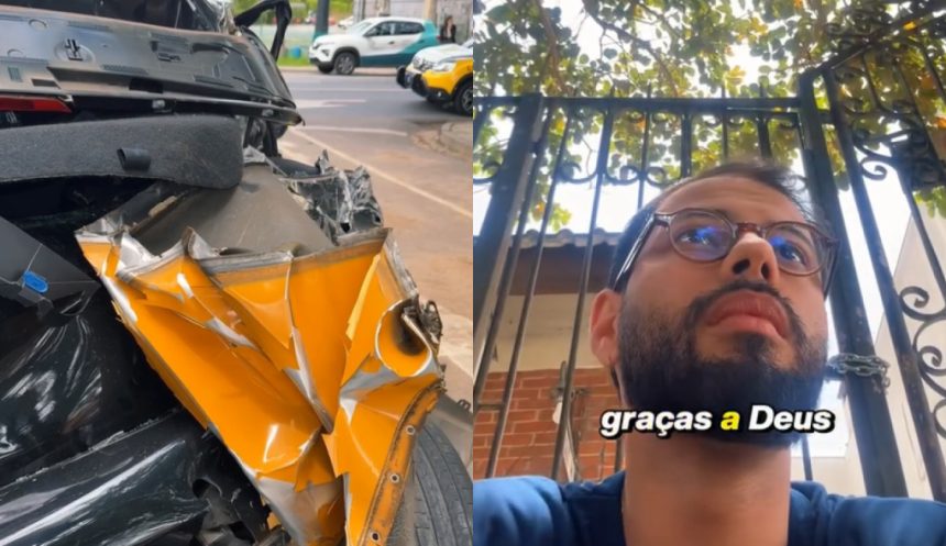 Um dos motoristas envolvidos no acidente, que manteve um tom reflexivo ao compartilhar sua experiência nas redes sociais, descreveu o momento como um “renascimento”. “Estava parado no sinal quando tudo aconteceu. Olhei para o meu carro e do outro lado não sobrou nada. Só consigo pensar que nasci de novo”, relatou o condutor, que saiu ileso apesar do impacto que destruiu seu veículo.