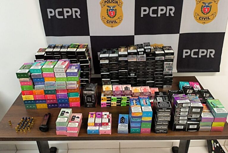 Uma mulher de 20 anos foi presa em flagrante na manhã desta quarta-feira (2), em Fazenda Rio Grande, na Região Metropolitana de Curitiba, durante o cumprimento de um mandado de busca e apreensão realizado pela Polícia Militar do Paraná. No local, os agentes encontraram 258 unidades de cigarros eletrônicos e diversas munições.