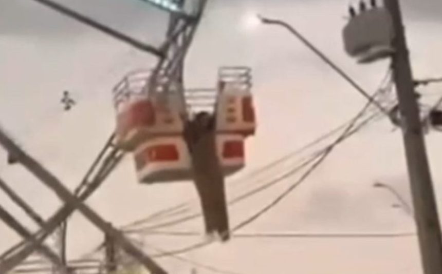 Durante as comemorações pelos 65 anos de Mandirituba, na Região Metropolitana de Curitiba, uma mulher protagonizou um momento de tensão ao ficar pendurada do lado de fora de uma cabine de roda-gigante. O episódio ocorreu no último fim de semana e foi registrado por pessoas presentes no evento. O vídeo, que mostra a mulher se segurando com as mãos na parte externa da estrutura enquanto o brinquedo ainda girava, rapidamente viralizou nas redes sociais.