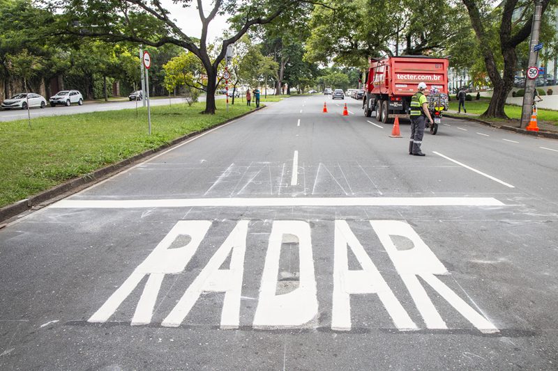O reforço na sinalização dos radares inclui ainda a sinalização horizontal, com a palavra “Radar” destacada no pavimento, entre 15 e 20 metros antes de cada equipamento, com tinta termoplástica, para ampliar a visibilidade para os motoristas.