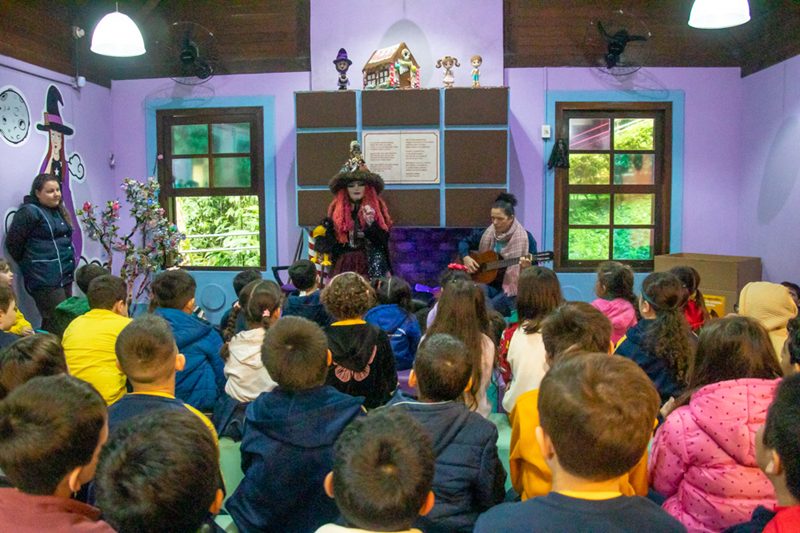 Contações em dois turnos, com curadoria literária e espaço rodeado de livros e natureza.