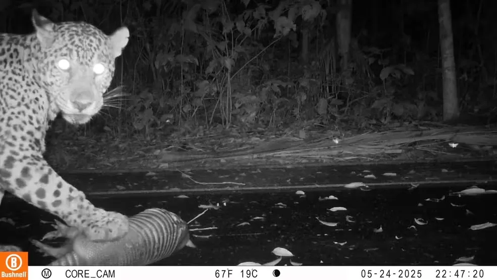 Uma armadilha fotográfica instalada no Parque Nacional do Iguaçu, em Foz do Iguaçu, no Oeste do Paraná, registrou o momento em que uma onça-pintada se preparava para se alimentar. A cena foi capturada pelo Projeto Onças do Iguaçu, que monitora os felinos por meio de câmeras posicionadas em pontos estratégicos da unidade de conservação.