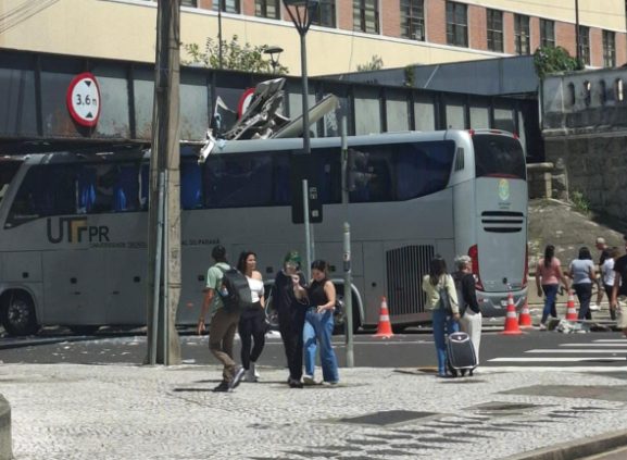 Um ônibus da Universidade Tecnológica Federal do Paraná (UTFPR) ficou preso na Ponte Preta, na Rua João Negrão, região central de Curitiba, no início da tarde desta quinta-feira (20). O incidente reforça um histórico de ocorrências semelhantes no local, que já registrou outros casos nos últimos meses.