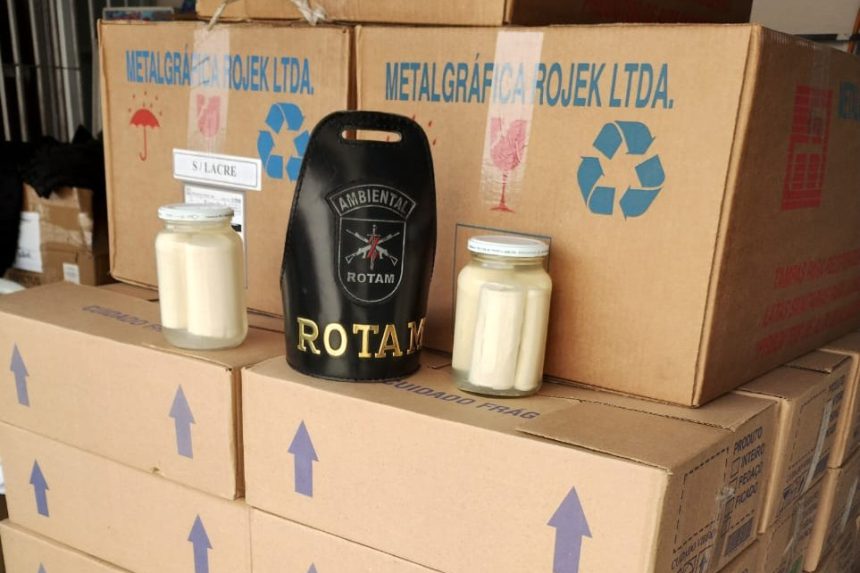 Além disso, também foram confiscadas três caixas com 2.700 tampas metálicas utilizadas no envase de produto. O responsável foi multado em R$ 86,4 mil e vai responder criminalmente pela infração. A carga e o veículo permanecem apreendidos para as devidas providências legais.