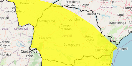 O aviso abrange praticamente todo o território paranaense, incluindo as regiões: