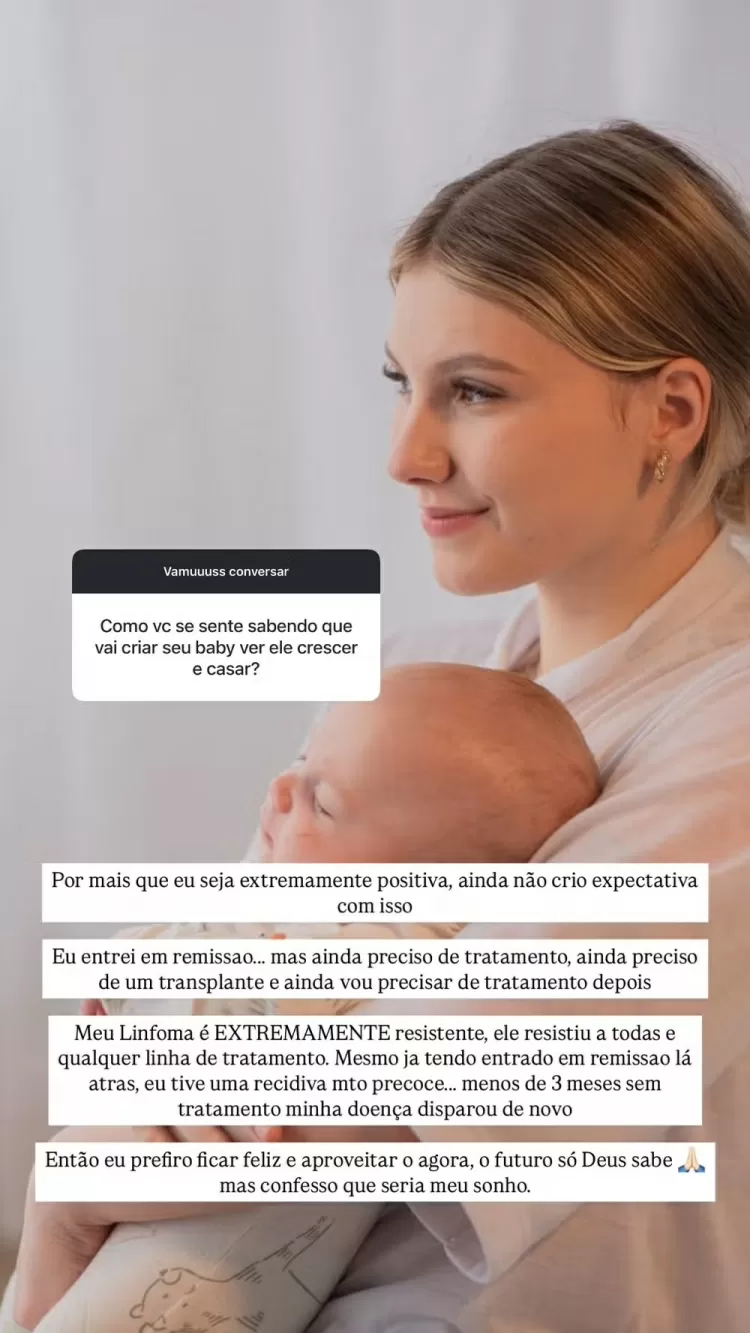 Casada com Lucas Borba, a jovem mãe já expressou o desejo de ampliar a família, mas deixou claro que a possibilidade de uma nova gestação está condicionada à estabilidade do quadro clínico. Isabel, que já enfrentou diversas fases da doença, relatou anteriormente que sua condição é considerada resistente aos tratamentos convencionais.