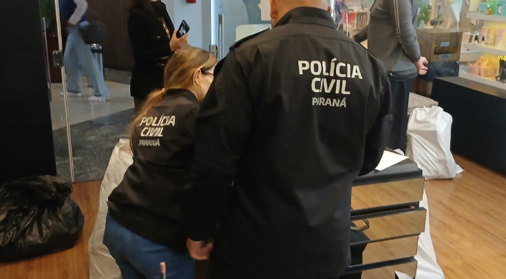 A Polícia Civil do Paraná (PCPR) apreendeu, nesta terça-feira (28), cinco sacos contendo 77 fardos de embalagens falsificadas com o emblema de uma marca de maquiagens, totalizando cerca de 1.925 recipientes. A ação aconteceu durante o cumprimento de mandado de busca e apreensão em uma empresa localizada no bairro Batel, em Curitiba.