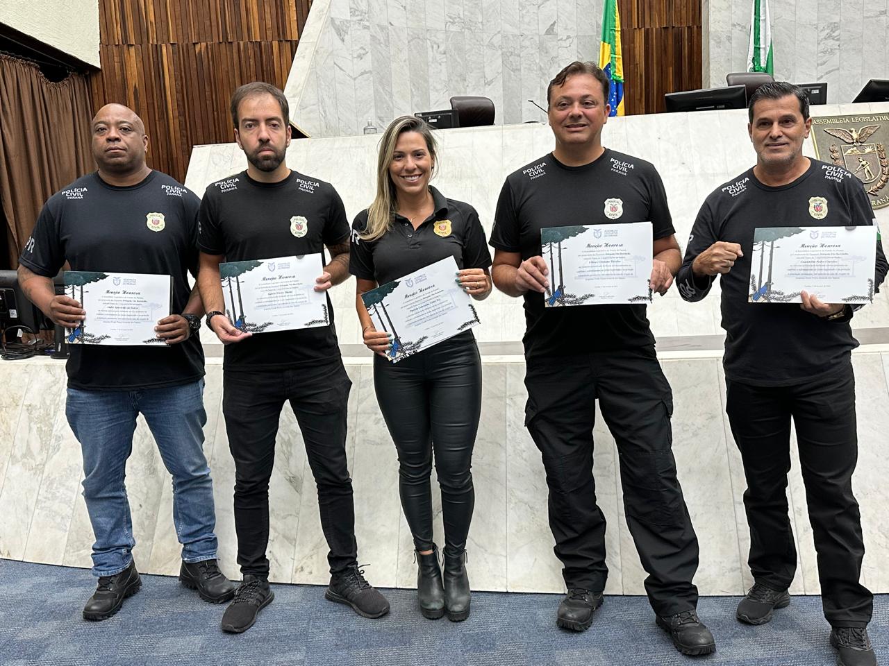 Ao todo, 12 policiais civis que atuaram diretamente no caso foram chamados a comparecer à sessão da Alep para receber a menção honrosa que foi proposta pelo deputado estadual Tito Barichello.