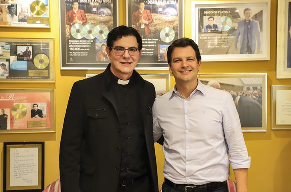 Destaque dos cem primeiros dias de gestão do prefeito Eduardo Pimentel, o projeto de revitalização do Centro foi um dos assuntos da visita de cortesia feita por ele ao líder religioso e comunicador católico Padre Reginaldo Manzotti. O encontro aconteceu nesta quarta-feira (dia 9/4), na sede da Associação Evangelizar É Preciso. A entidade funciona ao lado do Santuário Nossa Senhora de Guadalupe, no Centro, que atrai cerca de 700 mil pessoas por ano.