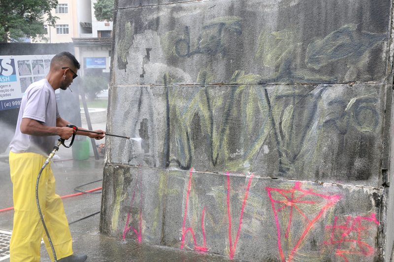 Entre os serviços executados, foi feita a limpeza dos monumentos da Praça 19 de Dezembro que haviam sido pichados por vândalos nesta semana. Foram usados produtos para a retirada das tintas e máquinas de alta pressão de água para a lavagem do Obelisco e da escultura da Mulher Nua.